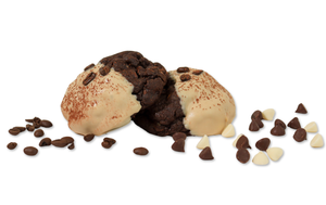 Inspired by the classic espresso martini, this decadent cookie features our signature dark chocolate dough infused with espresso and semi-sweet and white chocolate morsels. Hand-dipped in espresso white chocolate and topped with three coffee beans for the perfect finishing touch.